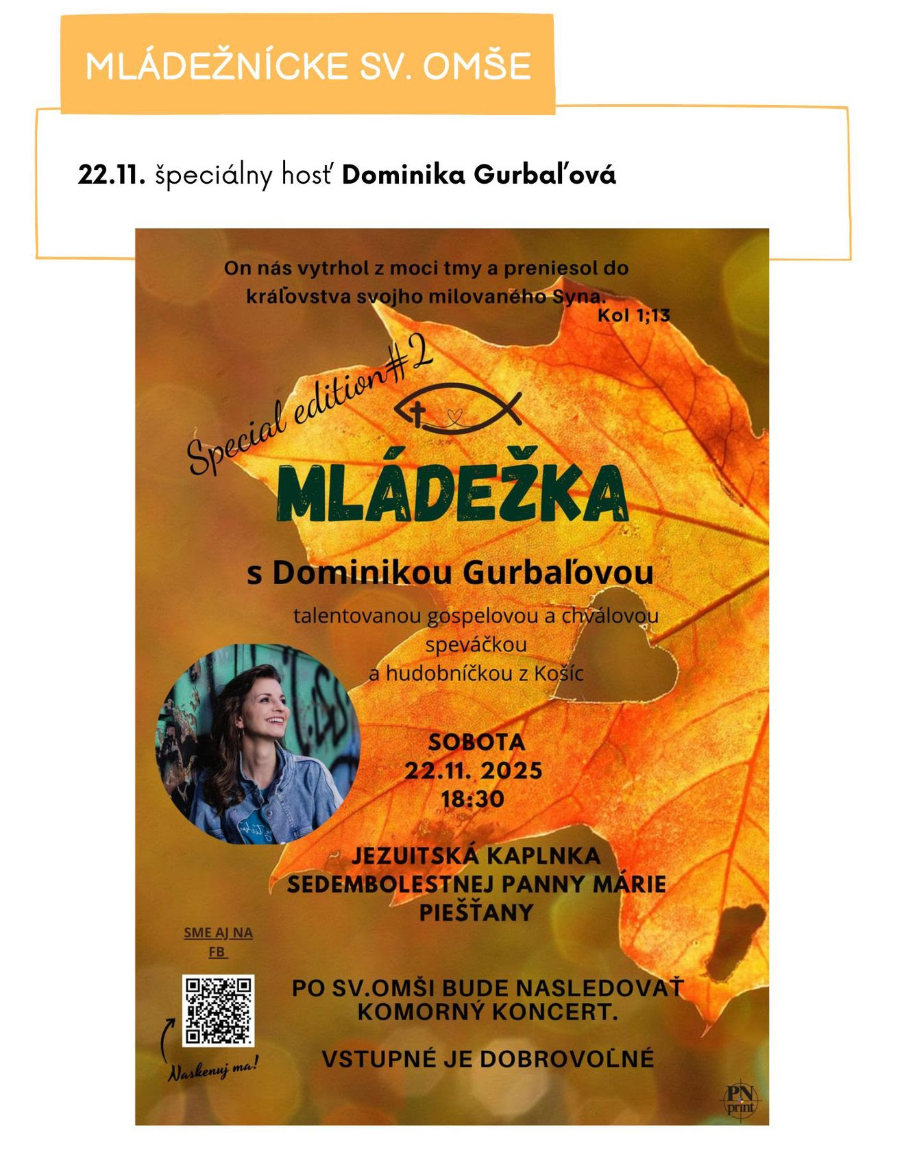 MLÁDEŽKA s Dominikou Gurbaľovou