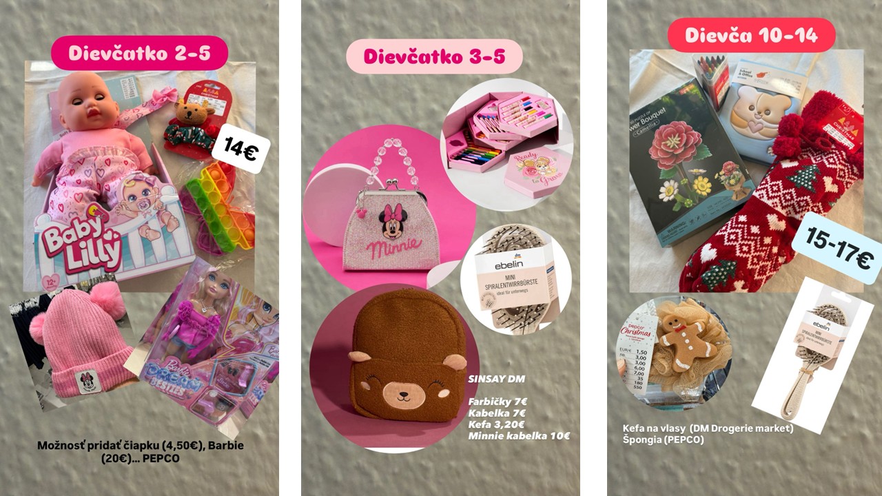 1. Dodáme Ti darčekovú krabičku a inštrukcie. Rovnaká veľkosť krabíc uľahčí logistiku. Krabička bude určená pre dievča alebo chlapca vo veku 2–4 roky, 5–9 rokov, alebo 10–14 rokov.